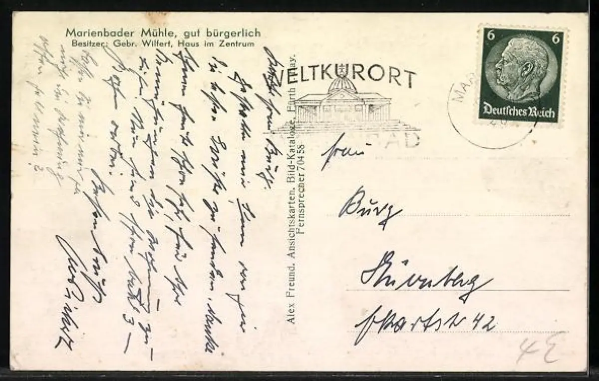AK Marienbad, Hotel Marienbader Mühle, Inh. Gebr. Wilfert