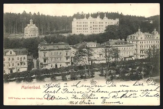 AK Marienbad, Teilansicht mit kleiner Kirche