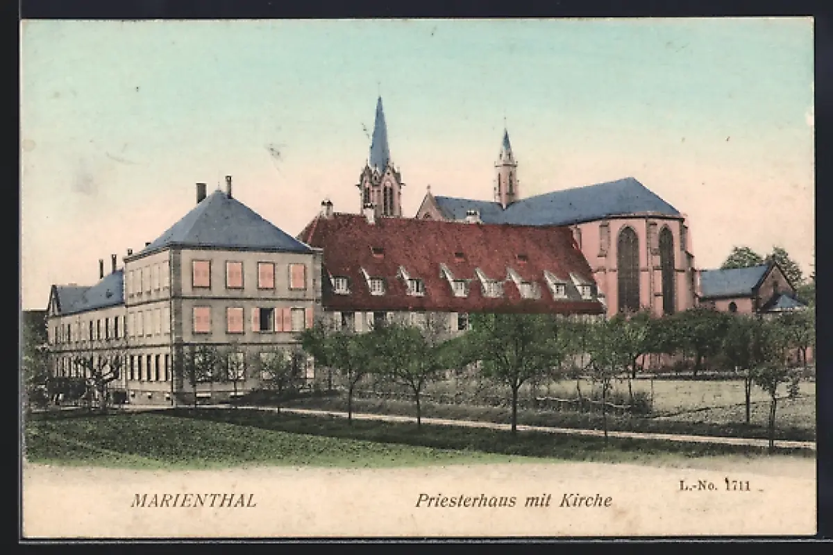 AK Marienthal, Prieserhaus mit Kirche