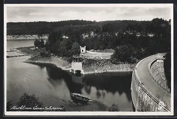AK Marklissa, Ansicht der Queistalsperre, Boot