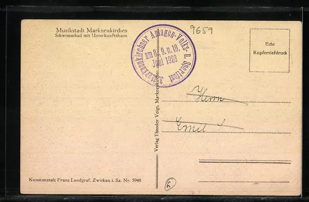 AK Markneukirchen, Schwimmbad mit Unterkunftshaus
