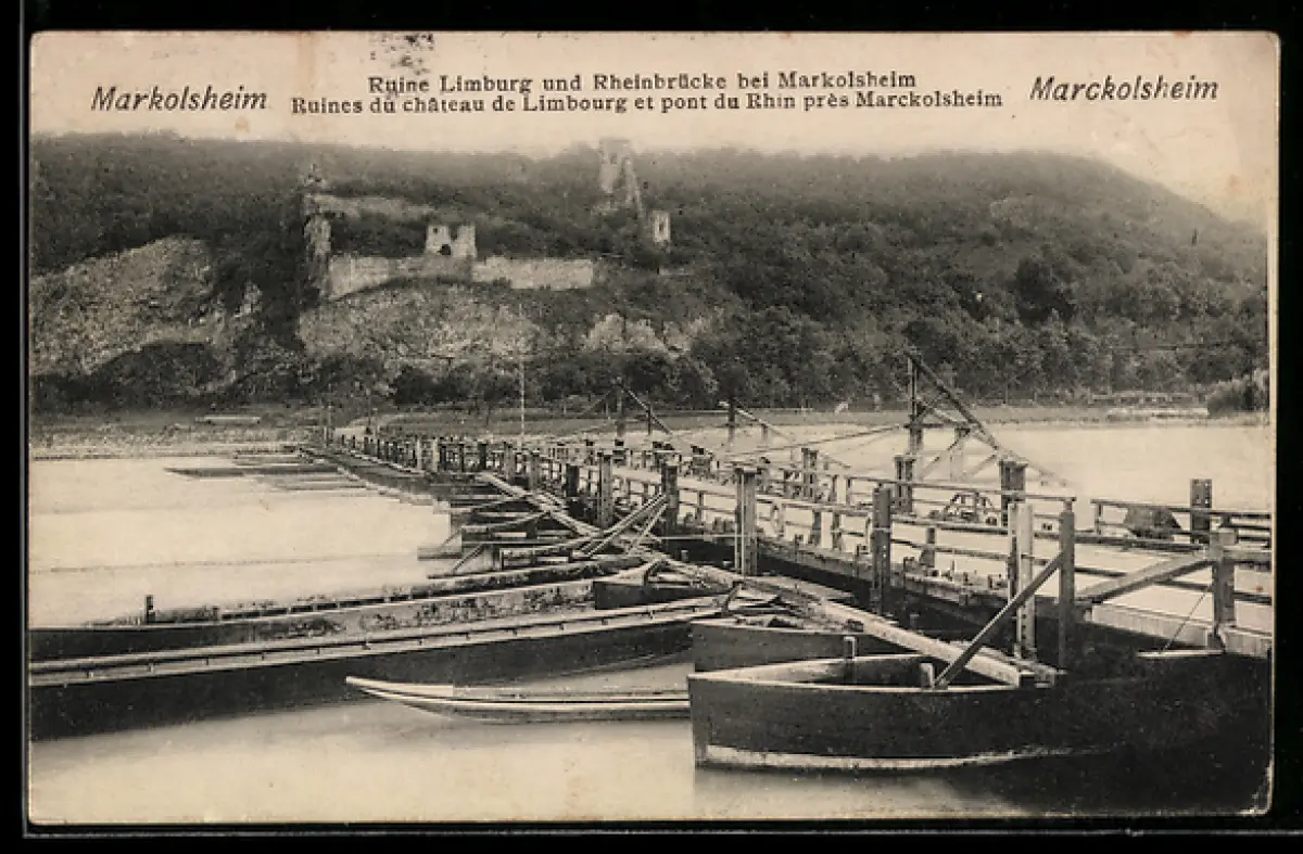 AK Markolsheim, Ruine Limburg und Rheinbrücke