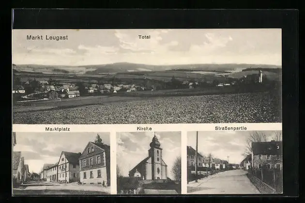 AK Markt Leugast, Totalansicht mit Umgebung, Strassenpartie, Marktplatz