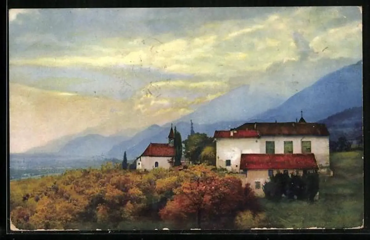 AK Marling b. Meran, Ortsansicht mit Bergpanorama