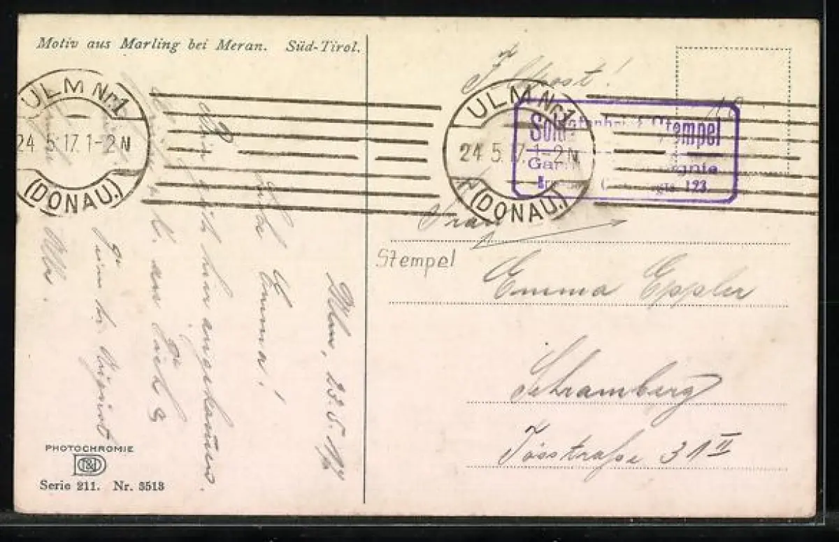alte Ansichtskarte, gelaufen 1917 als Feldpost, Eckknick rechts oben, guter Zustand