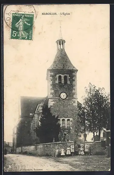 AK Marolles, L`Église avec des habitants devant