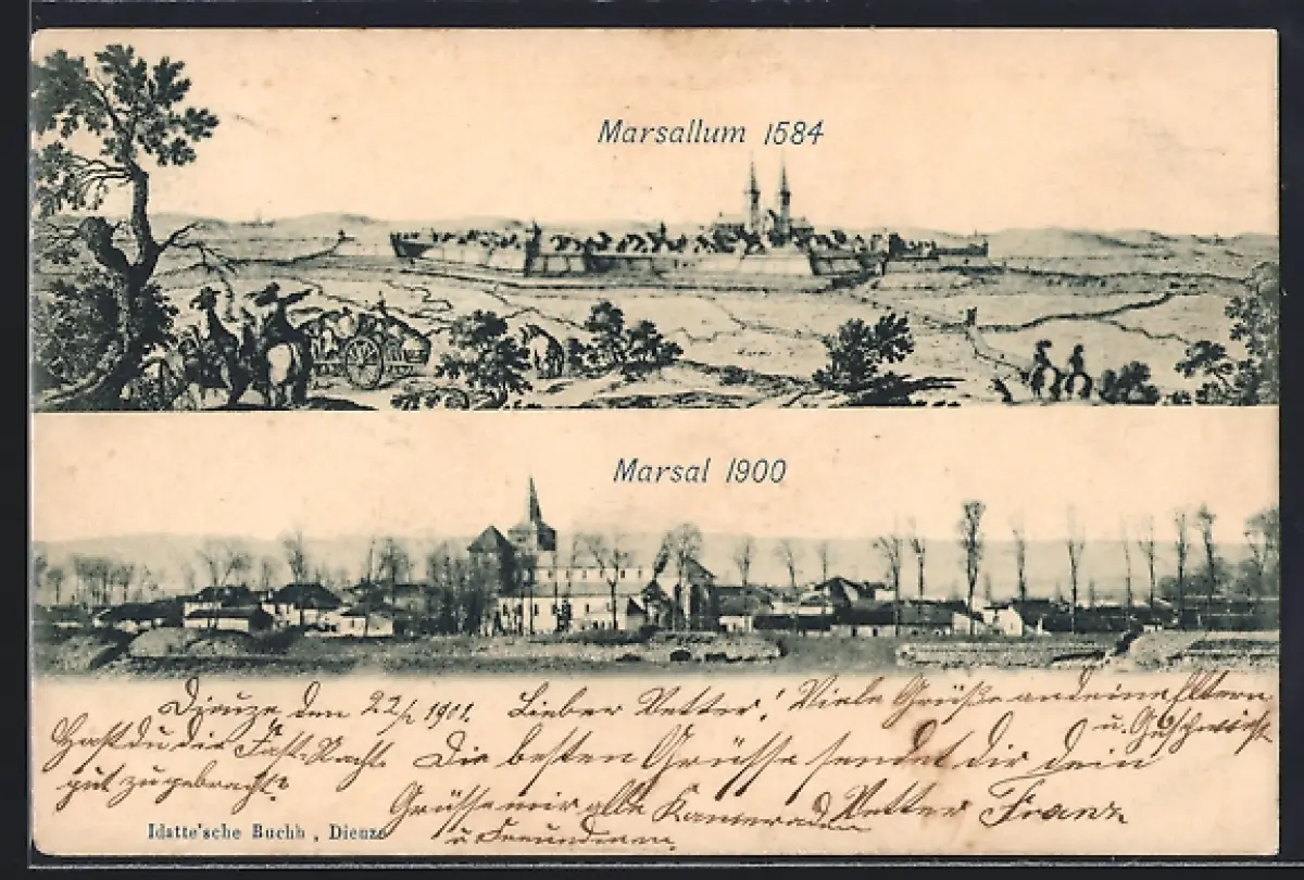 AK Marsal, Vue de Marsallum 1584 et Marsal 1900