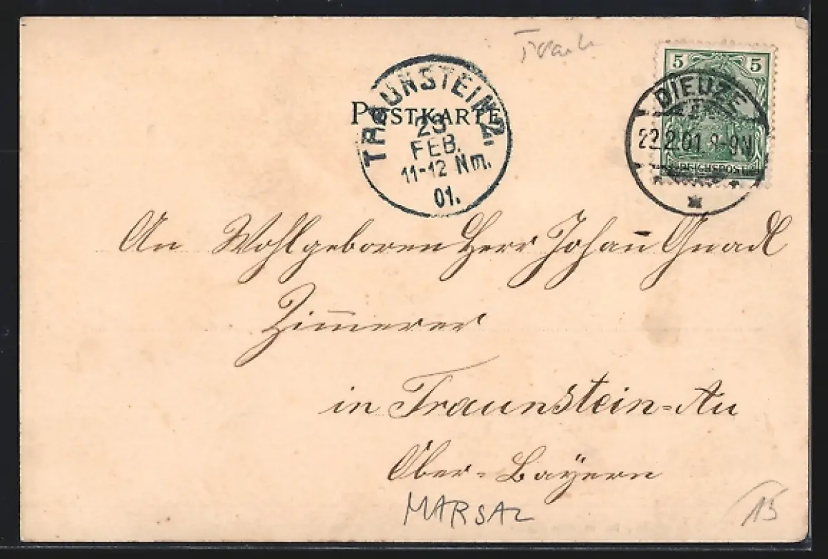 alte Ansichtskarte, gelaufen 1901, guter Zustand
