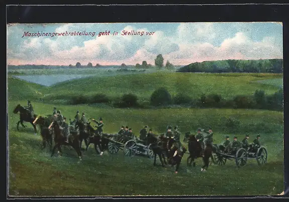 AK Maschinengewehrabteilung der Infanterie geht in Stellung vor