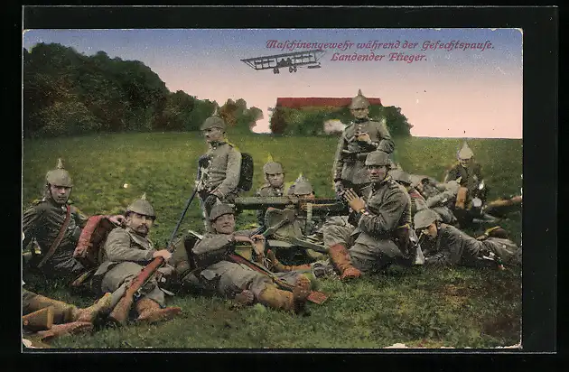 AK Maschinengewehrschützen während der Gefechtspause, Landendes Flugzeug