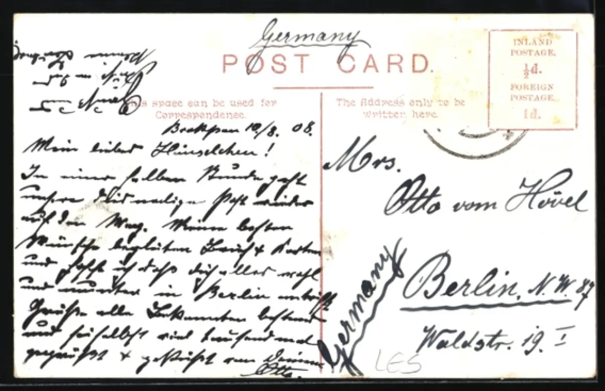 alte Ansichtskarte, gelaufen, Briefmarke entfernt, guter Zustand