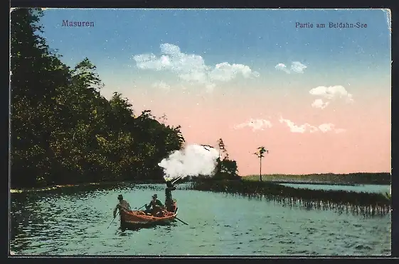 AK Masuren, Beldahn-See mit Boot
