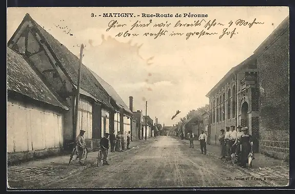AK Matigny, Rue-Route de Péronne, Strassenpartie