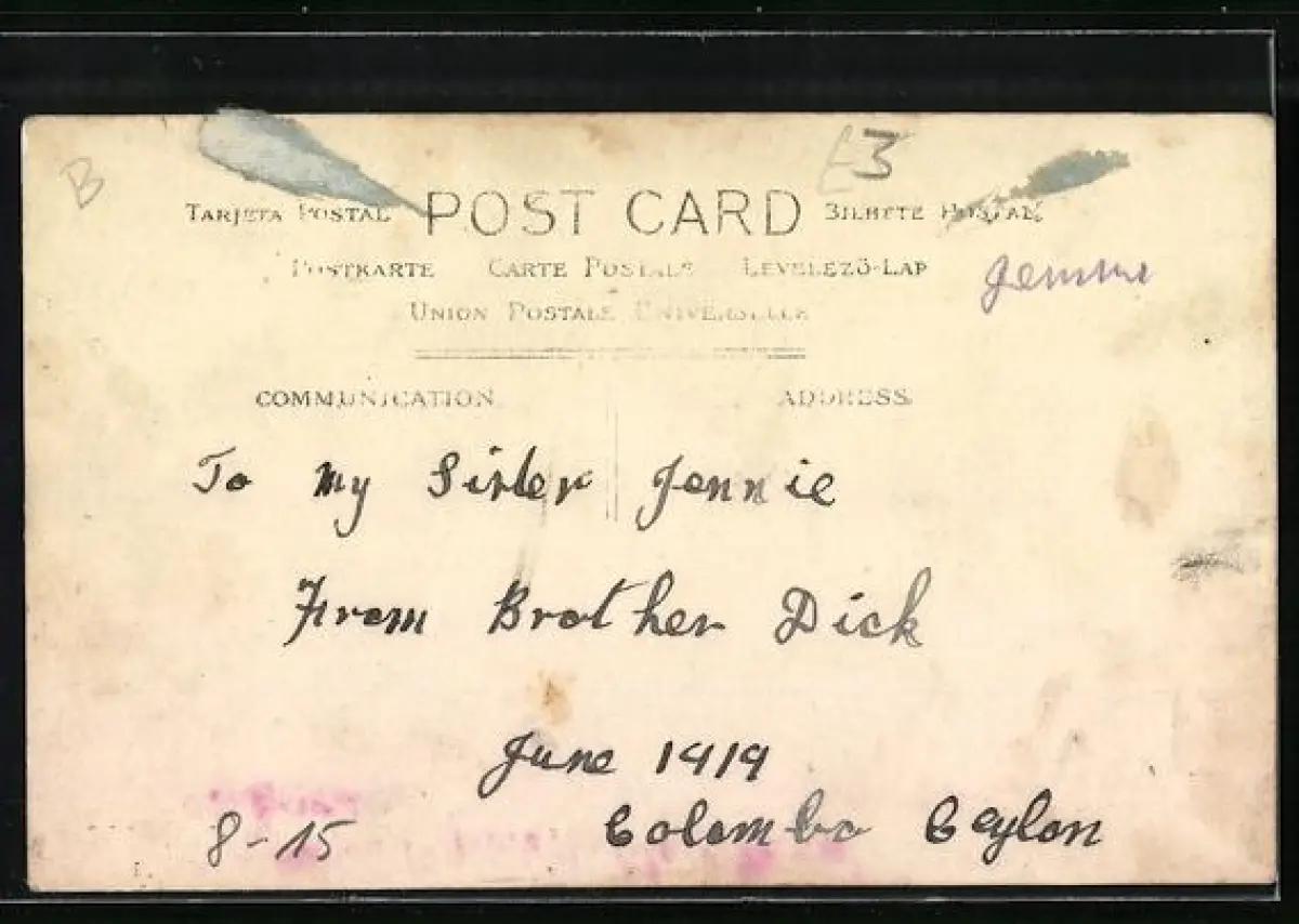 alte Ansichtskarte, ungelaufen, rückseitig Klebe- und Papierreste, guter Zustand