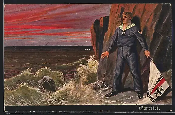 AK Matrose der kaiserlichen Marine an einer Steilküste