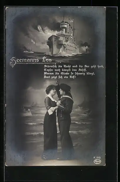 AK Matrose in Uniform und seine Frau, Kriegsschiff