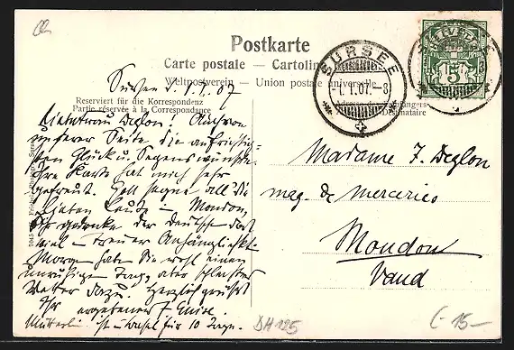 alte Ansichtskarte, gelaufen 1907, Stempelspur, guter Zustand