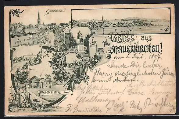 AK Mauerkirchen, Totalansicht, Marktplatz, Schloss Spitzenberg