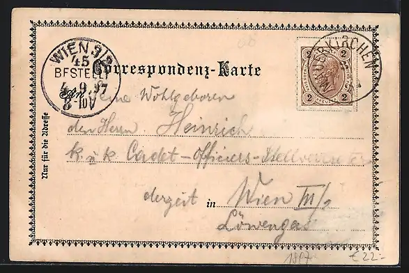 alte Ansichtskarte, gelaufen 1897, guter Zustand