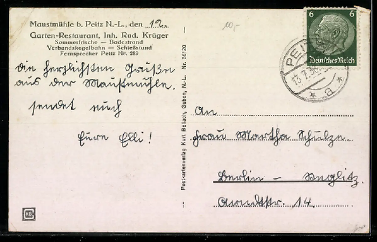 gelaufen 1936, Eckknicke re., kl. Eckschaden oben li., guter Zustand