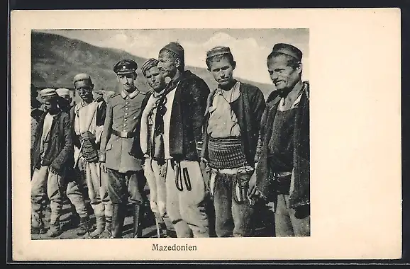 AK Mazedonien, Soldat in Uniform mit Männern