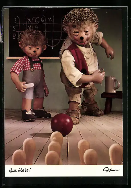 AK Mecki beim Kegeln mit dem Sohnemann, Gut Holz!