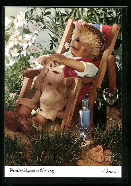 AK Mecki sitzt im Liegestuhl, Gruss zur Genesung