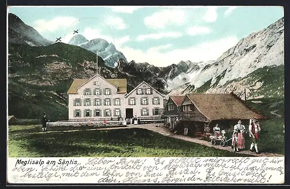 AK Meglisalp, Gebäudeansicht mit Säntis