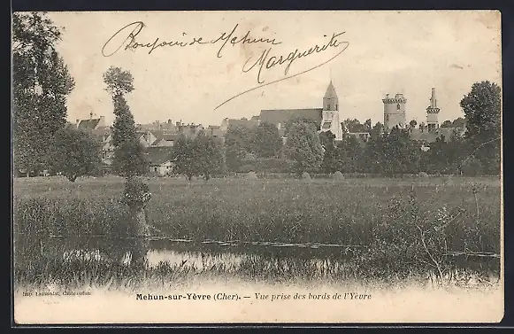 AK Mehun-sur-Yèvre, Vue prise des bords de l`Yèvre
