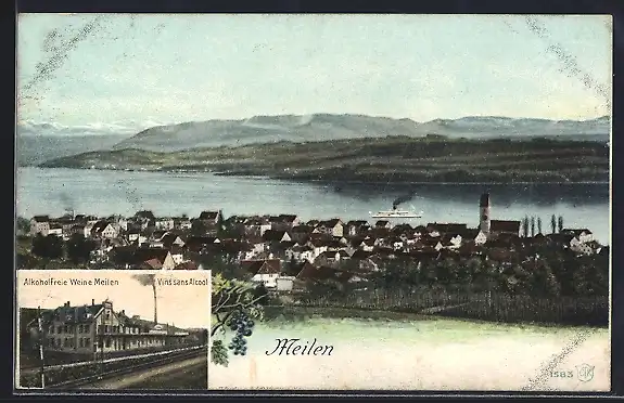 AK Meilen, Alkoholfreie Weine Meile, Gesamtansicht vom Ort mit Dampfer