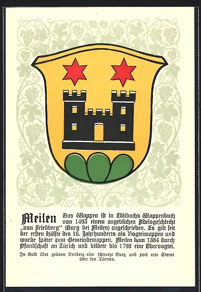 AK Meilen, Wappen auf Weintrauben-Ornamenten, Info-Text