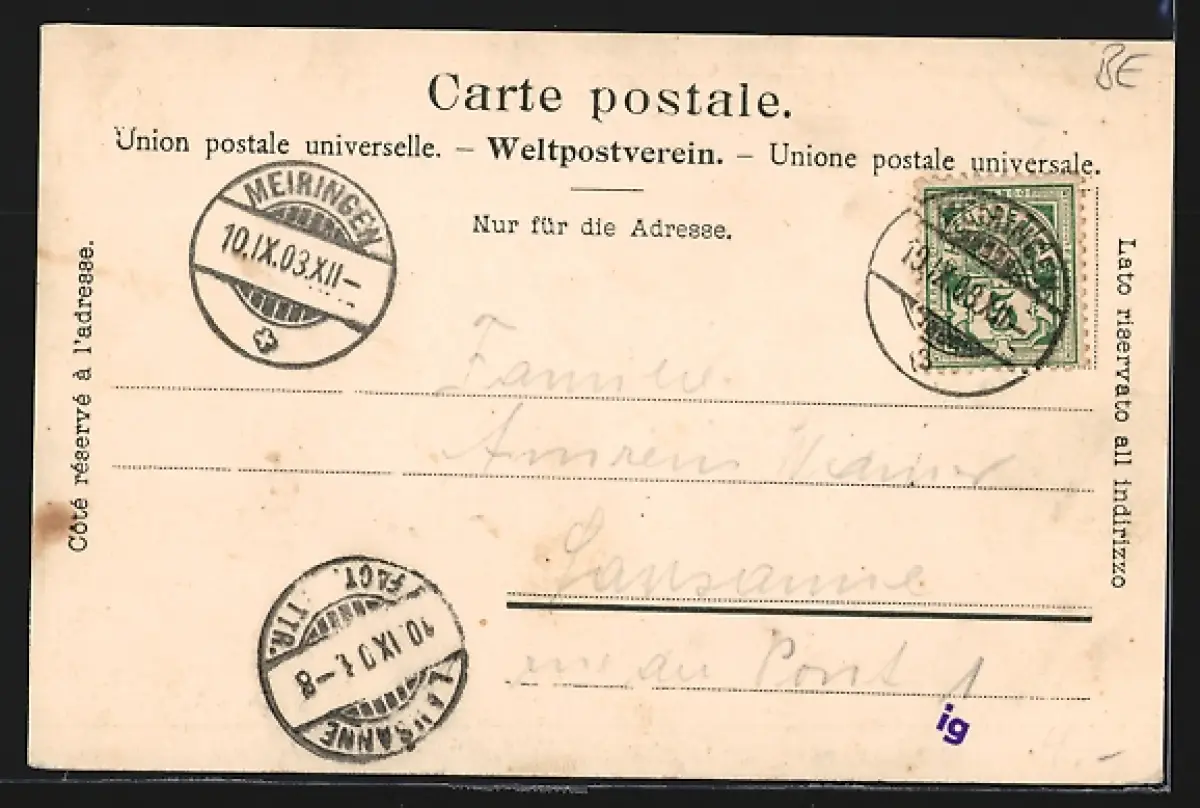 alte Ansichtskarte, gelaufen 1903, Eckknick oben re., guter Zustand