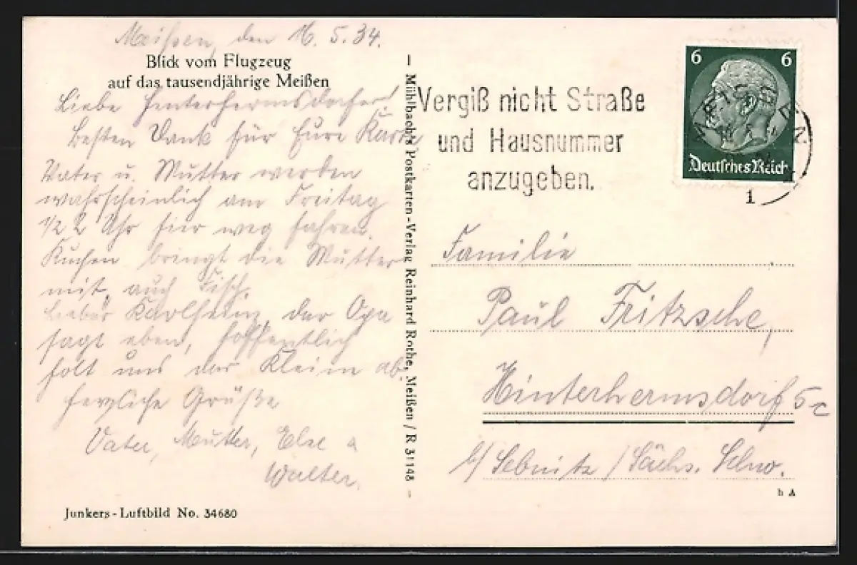AK Meissen / Elbe, Blick vom Flugzeug auf den Ort