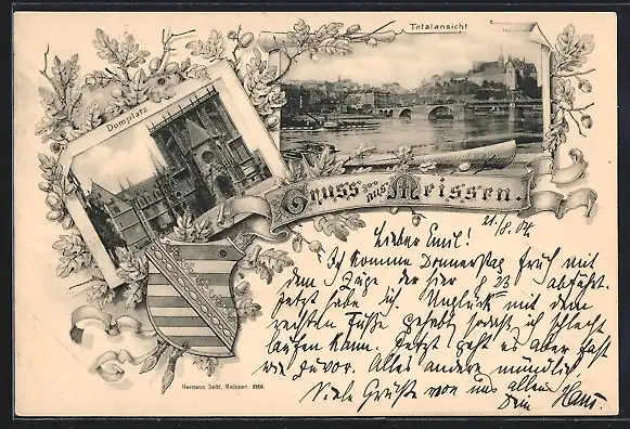 AK Meissen, Totalansicht und Domplatz