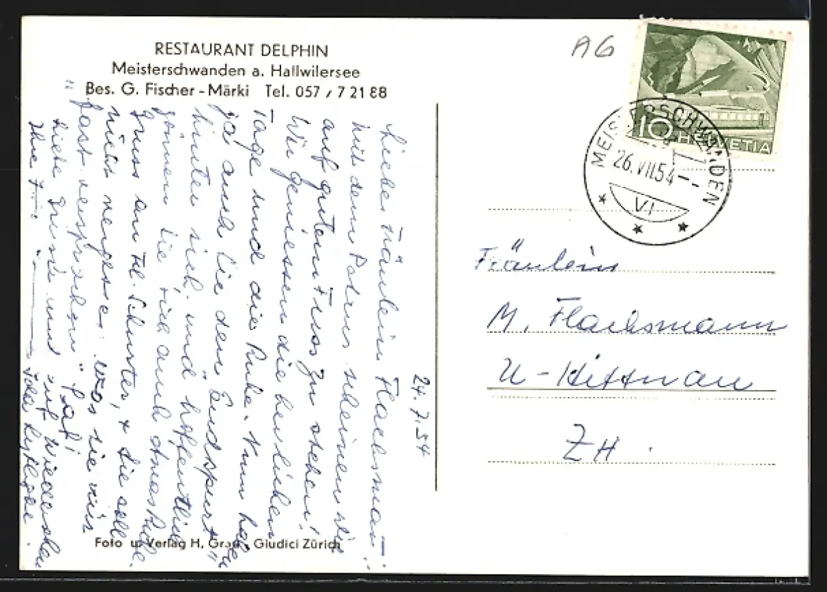 AK Meisterschwanden a. Hallwilersee, Restaurant Delphin und Boot Hallwyl