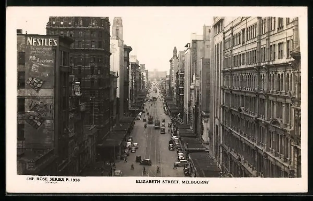 AK Melbourne, Elizabeth Street, Strassenbahn
