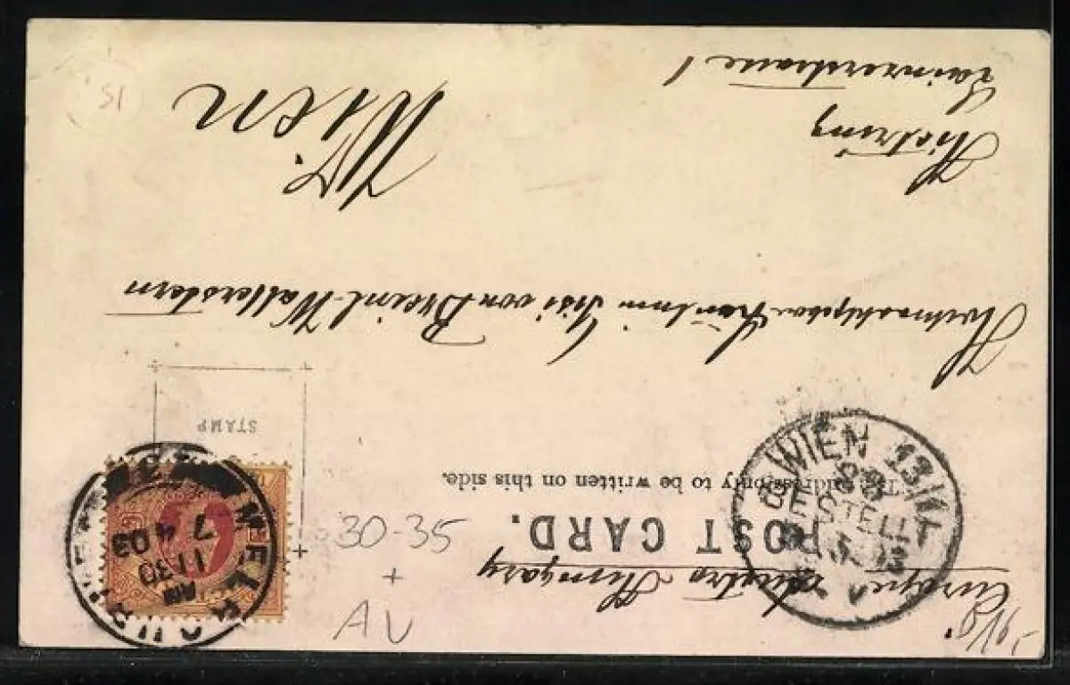 alte Ansichtskarte, gelaufen 1903, Eckknick oben rechts, guter Zustand