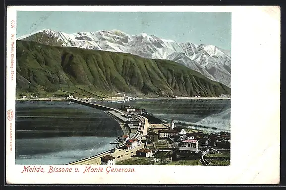 AK Melide, Ortsansicht mit Blick auf den Monte Generoso