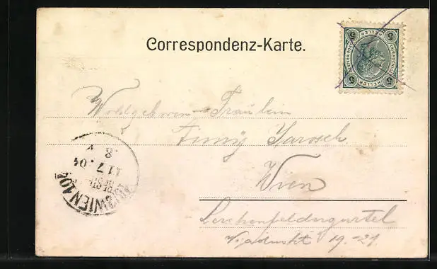 alte Ansichtskarte, gelaufen 1904, Stempelspur, guter Zustand