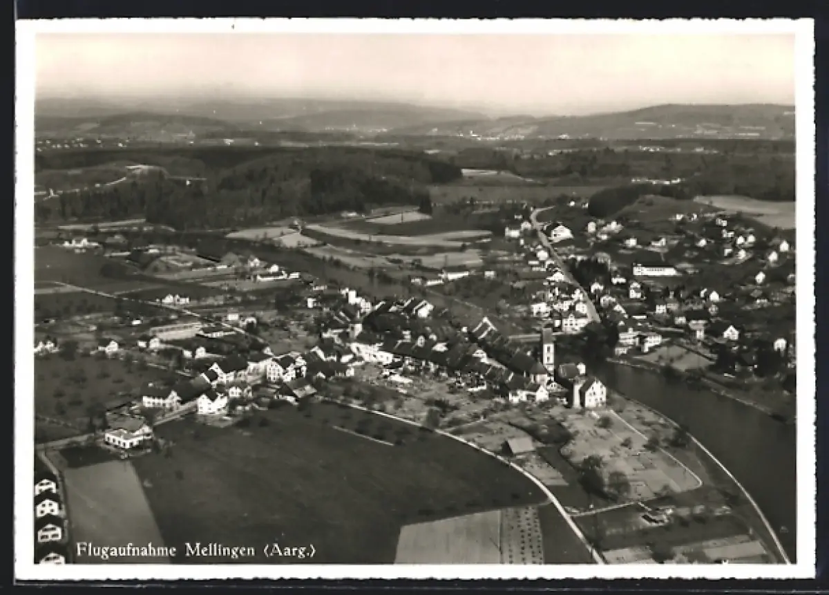 AK Mellingen /Aarg., Totalansicht mit Fernblick vom Flugzeug aus