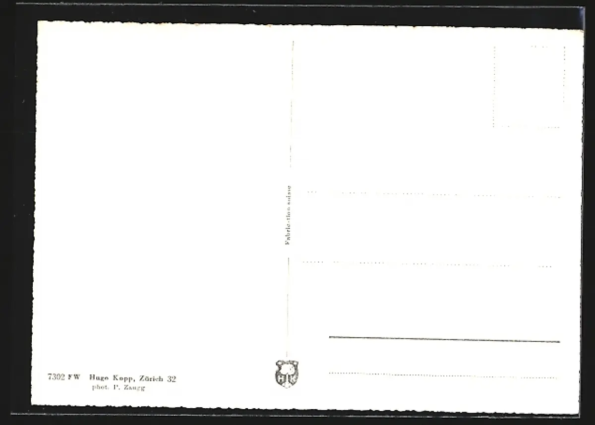 Personenbezogene Daten auf der Rückseite der Karte wurden durch blauen Textmarker unkenntlich gemacht. Die blauen Stellen sind auf die Vorderseite durchgeweicht und wirken sich negativ auf das Postkartenfoto aus