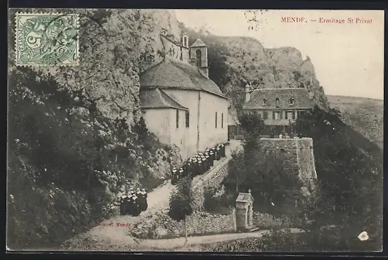 AK Mende, Ermitage St Privat avec procession religieuse