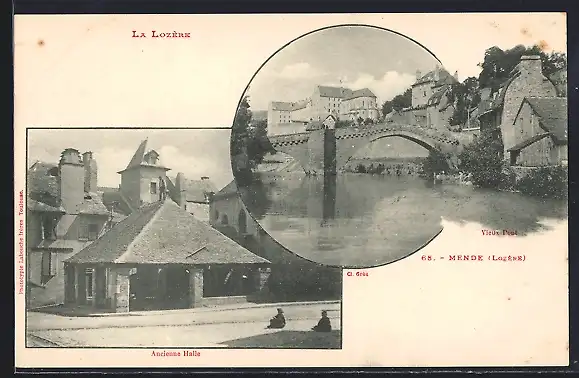 AK Mende, Vue du Vieux Pont et de l`Ancienne Halle