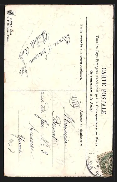 gelaufen 1907, Eckknick li. oben, Bugspur li. unten, guter Zustand