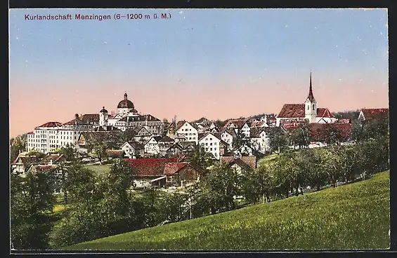 AK Menzingen, Ortsansicht mit Kirche