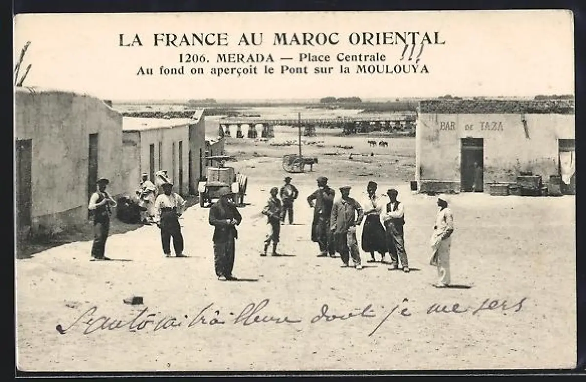AK Merada, Place Centrale, Au fond on apercoit le Pont sur la Moulouya