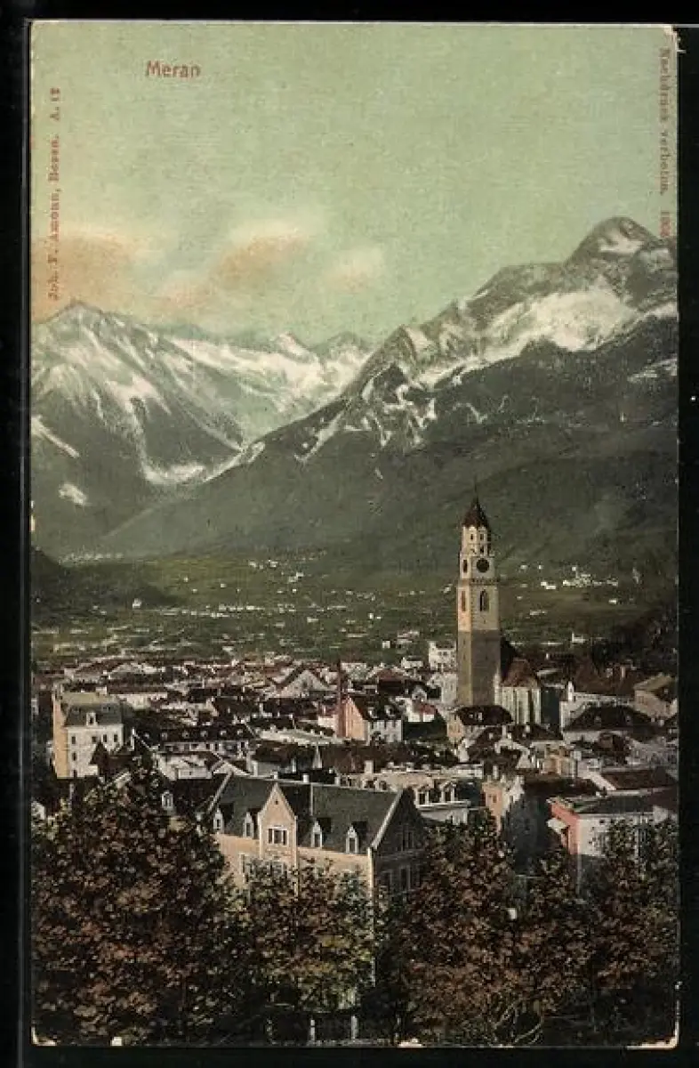 AK Meran, Panorama mit Kirche