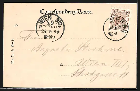 alte Ansichtskarte, gelaufen 1899, Stempelspur, guter Zustand