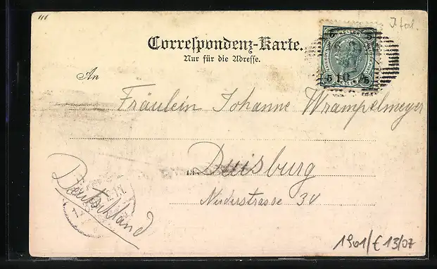 alte Ansichtskarte, gelaufen 1909, Eckknick re. oben, Stempelspur, guter Zustand