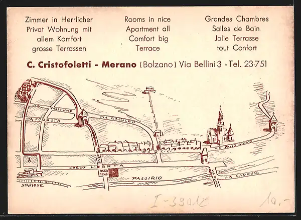 AK Merano /Bolzano, Pensione C. Cristofoletti, Via Bellini 3